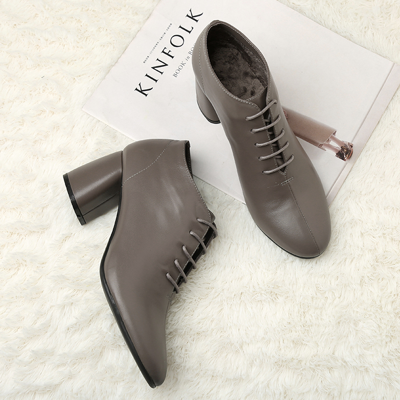 2022 autumn and winter leather head coarse and short boots high heel with Martin boots bare plus female boots