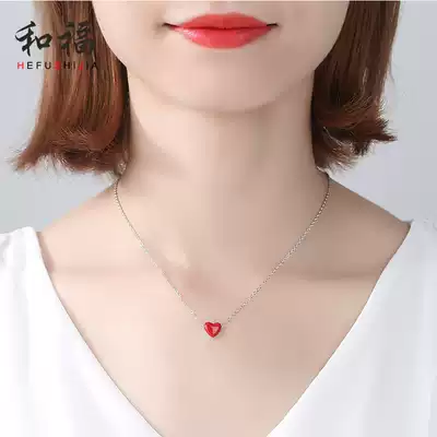Double-sided small red heart necklace female Korean version of simple personality heart-shaped love heart pendant clavicle chain tide net red jewelry