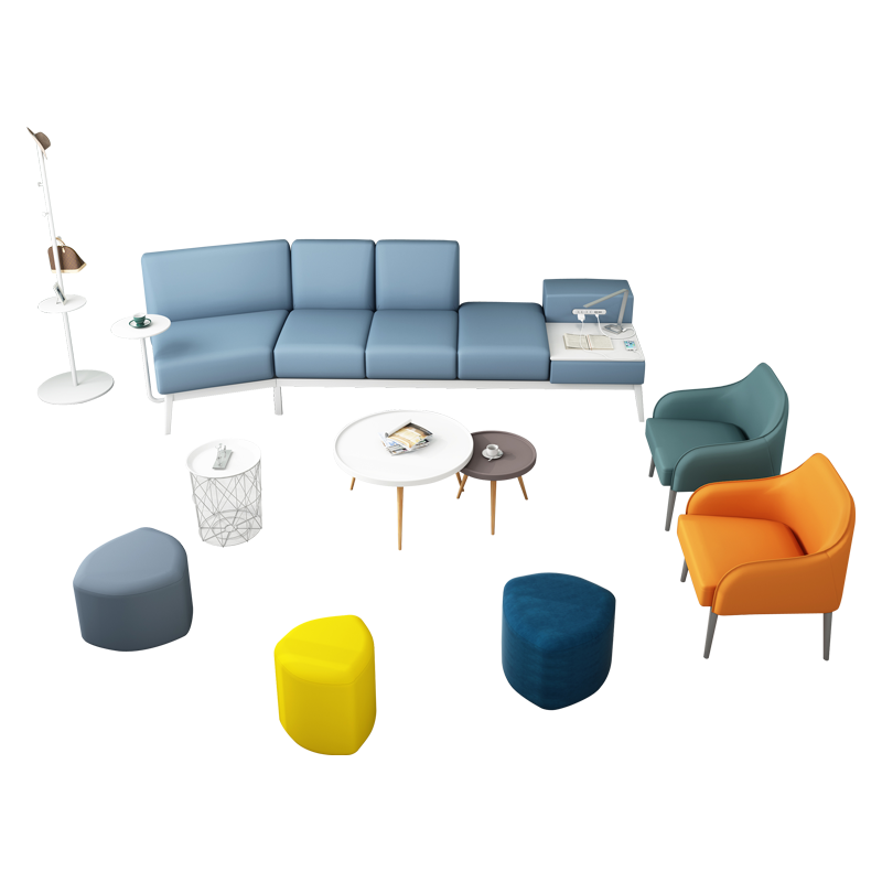 Corner sofa (chenille fabric) 395 sofa chair (water-based technology leather) triangle stool large, medium and small combination T518 coffee table T522 coffee table T509 coffee table complete set combination A complete set combination B