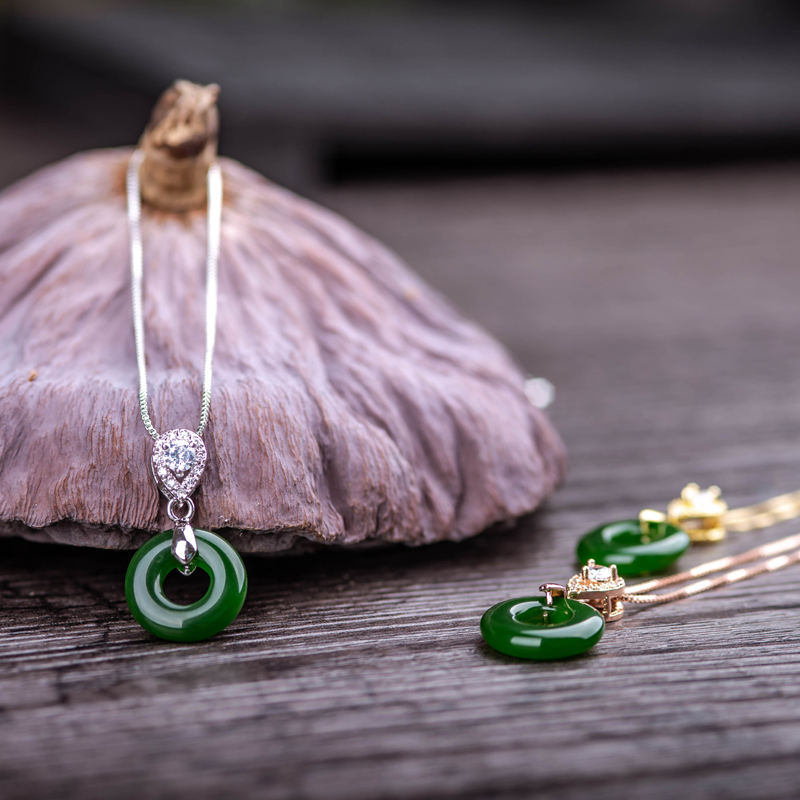 Xi Ranxuan natural Hetian jasper peace buckle pendant clavicle chain 925 silver inlaid necklace spinach green