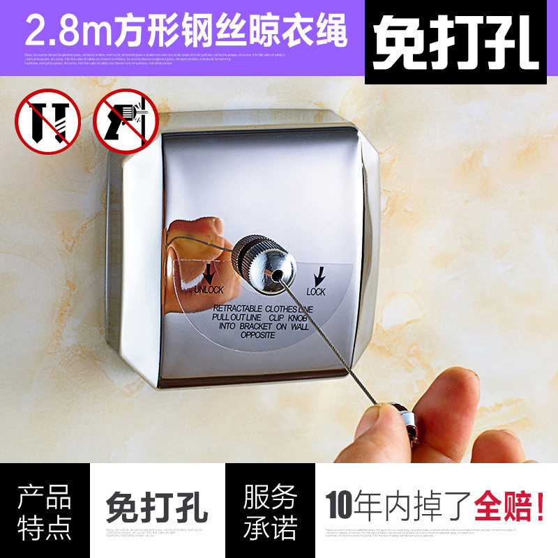 Clothing rope can be scaled 304 stainless steel wire rope bathroom drying artifact invisible drying rack without punching hole