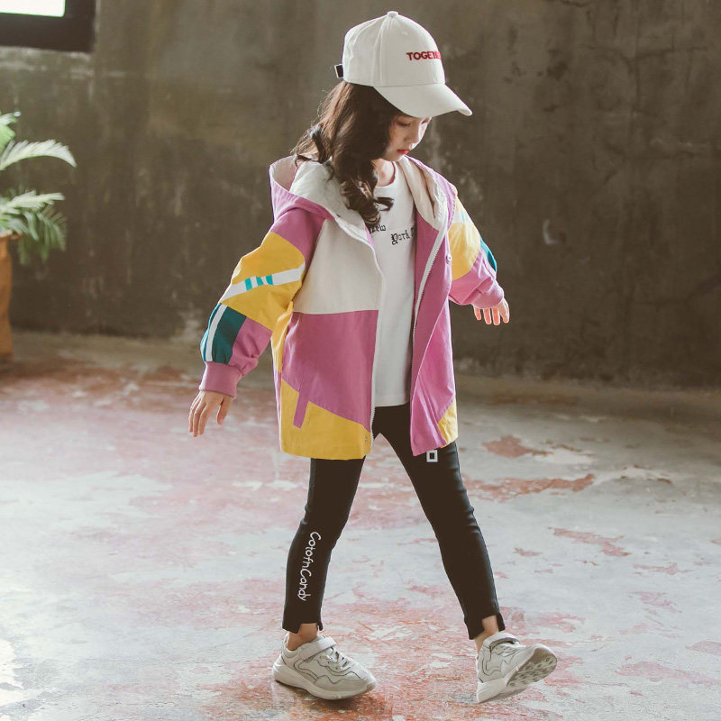 2021 New 5 children 7 girls spring and autumn coat 8 girls 6 Korean windbreaker 9 foreign style 4 coat 10 tide 12 years old