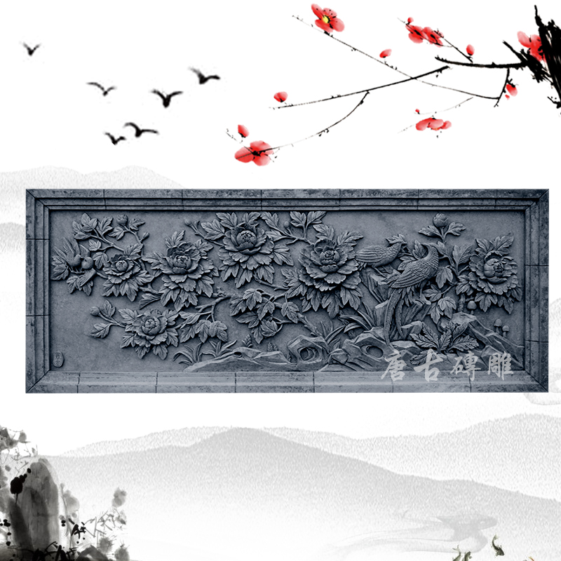 Tang ancient brick carving Antique brick carving relief shadow wall Photo wall wall pendant Hui school Chinese ancient building flowers bloom rich