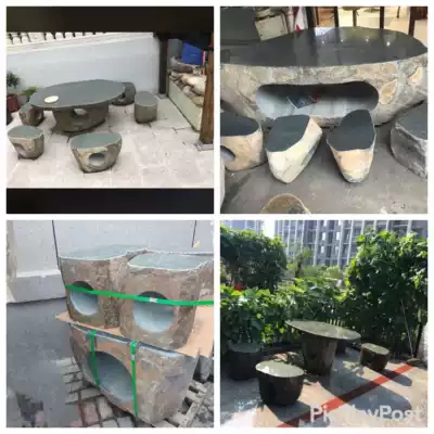 Pebble table 90 cm Bluestone table color photo 5 pieces of bluestone stone stool Bluestone table length 1 meter set of pebbles 1 meter long table 1 set of 4 stools Pebble stone stool Pebble table set of pebbles stone table one meter 2 pebbles