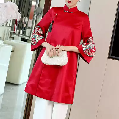 Modified cheongsam Chinese style red toast dress daily autumn and winter national style female banquet Chinese Tang dress retro top