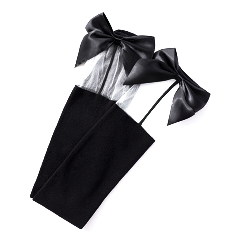 Day series sexy high cylinder socks female handmade butterfly knot long cylinder socks fiberglass white black silk stockings over knee maid socks