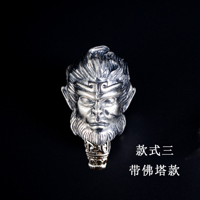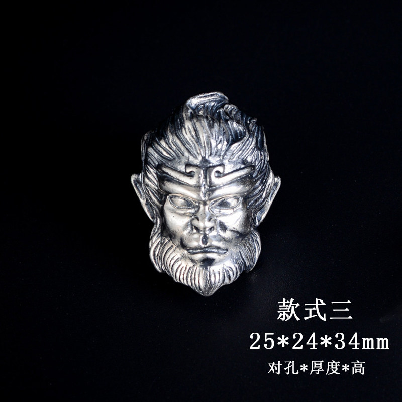 925 sterling silver Six-character truth three-way big Monkey head Buddha head King Kong Bodhi Star Moon Buddha beads play hand string diy accessories