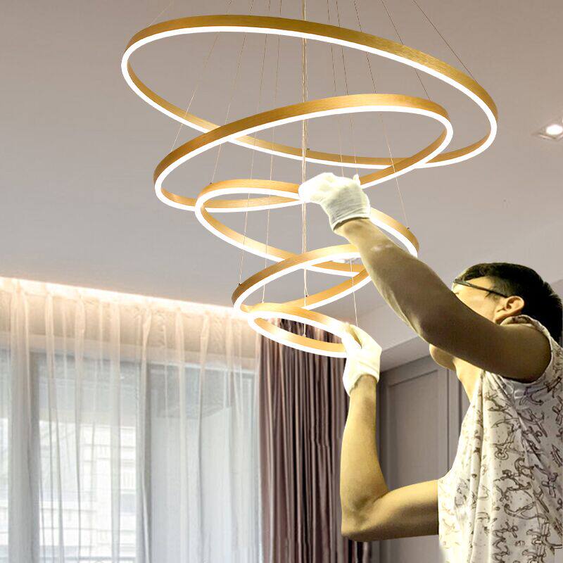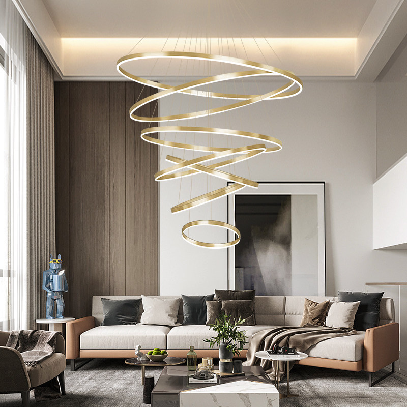 Light luxury living room chandelier modern simple hall lamp creative duplex building circular atmospheric staircase chandelier fixtures net red