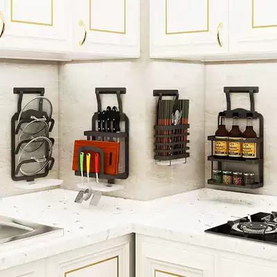 Wisdom black pot cover rack(punch-free punch) Wisdom black chopstick tube(punch-free punch) Wisdom black knife plate rack(punch-free punch) Wisdom black seasoning pot rack(punch-free punch)