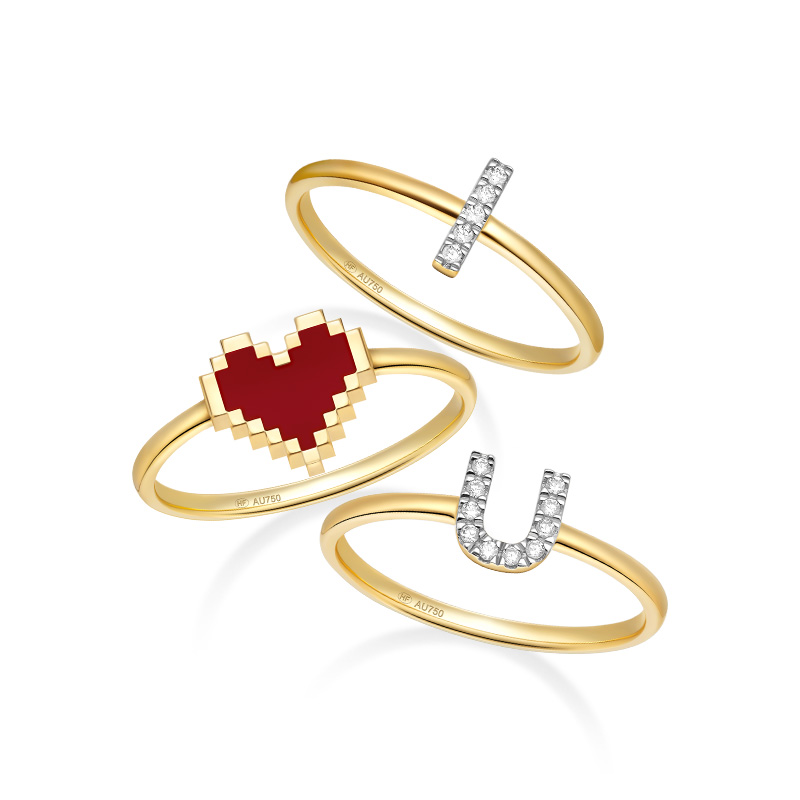 HEFANG Where to sue white K gold ring 18k gold letter inlaid drill minimalist ring hand decorated with girlfriend gift