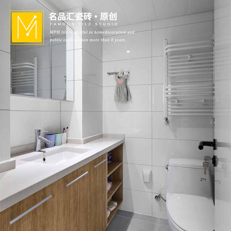 Thickened pure white tile bright light balcony kitchen wall tile bathroom toilet toilet bathroom glazed tile kitchen and bathroom tile
