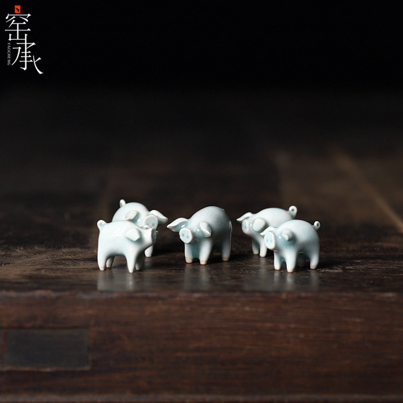 Dragon Springs Green Porcelain Zhou Jingpo Pure Handmade Pinching < Five Fuorlinen > Small tea darling tea table swing piece collection to play the game
