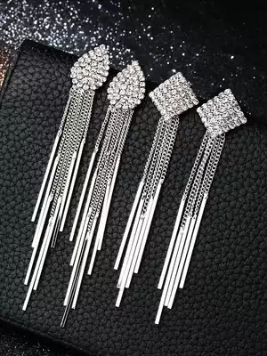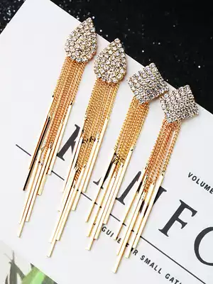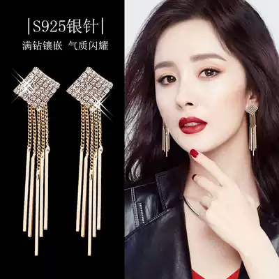 Water droplets Korean sterling silver stud earrings tassel long version temperament female 2021 new trendy earrings personality wild earrings earrings