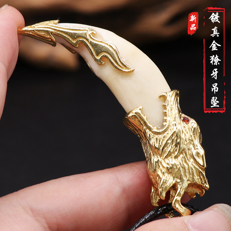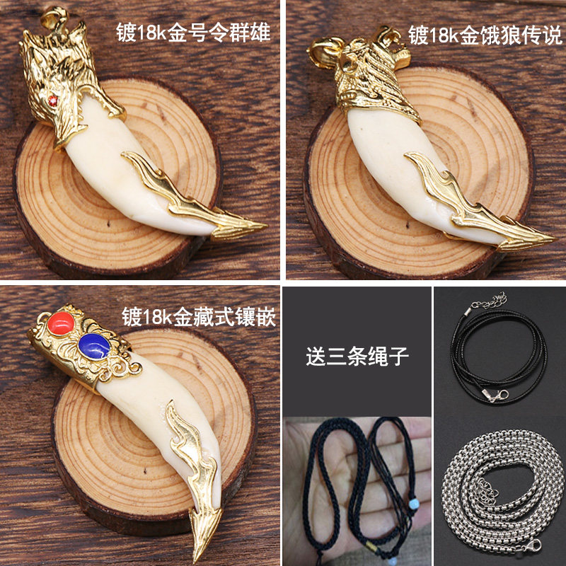 Real Black Dog Tooth Necklaces Necklaces for men and women Handmade DIY inlaid wolves ethnic wind pendant sets plated 18k gold
