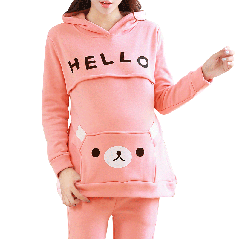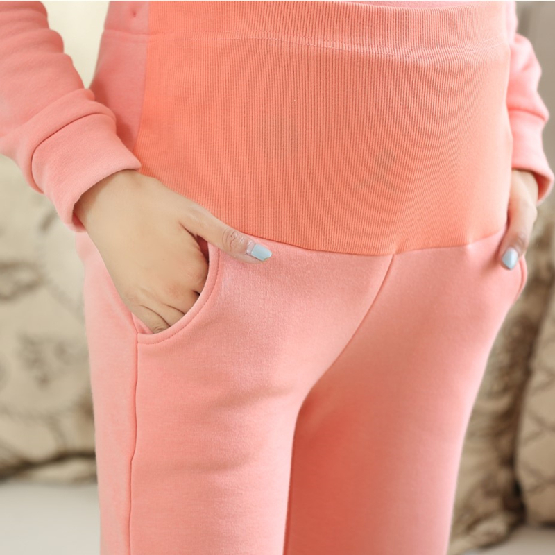 Super large size pregnant women's suit spring and autumn early pregnancy belly support plus fleece to keep warm outerwear fat winter Korean version of the two-piece suit