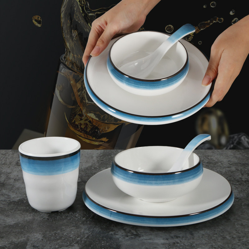 Meamine tableware set hotpot four pieces restaurant dish cup cup spoon hotel hotel commercial plastic imitation kit