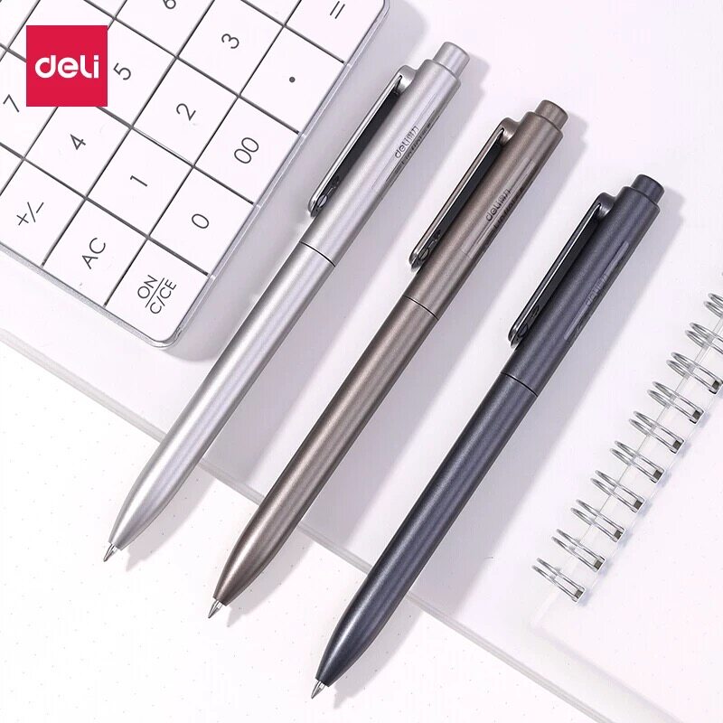 Deli A12 A13 Luxu press gel pen black water-based pen 0 5mm metal business signature pen Gel pen student doctor conference black refill office stationery wholesale