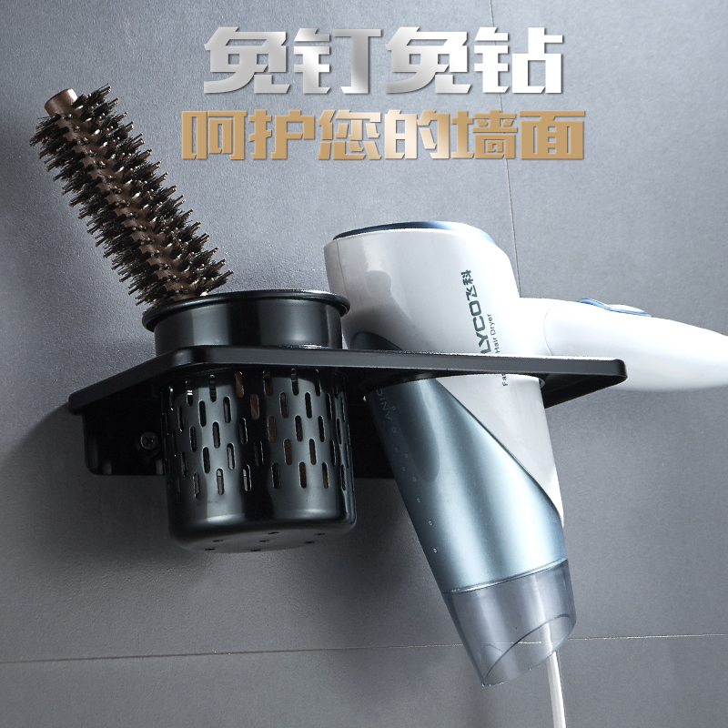 Black Makeup Room Free Punch Hair Dryer Frame Space Aluminum Bathroom Shelve Shower bathroom Toilet Wall-mounted Basket