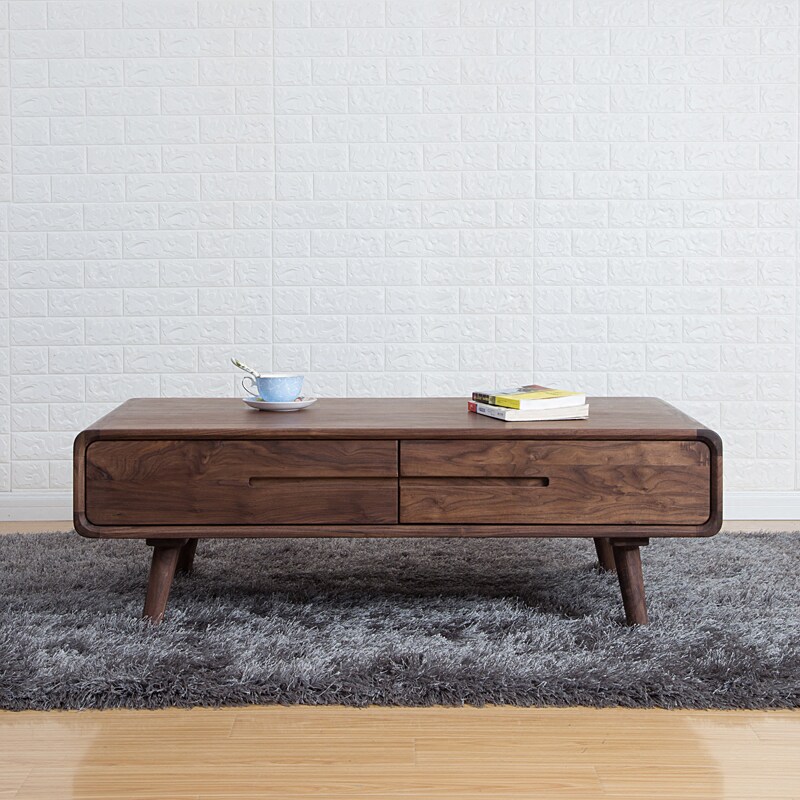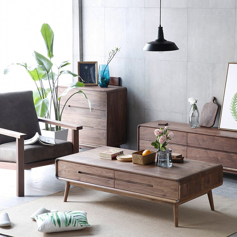North American black walnut tea table TV cabinet combined Solid wood tea few American minimal tea table modern living room storage shorter