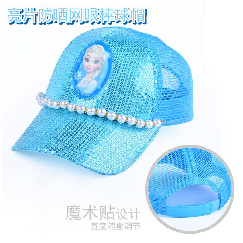 Cartoon Aisha Girl Hat Frozen Princess Mesh Sequin Children Cap Summer and Autumn Sunscreen Hat