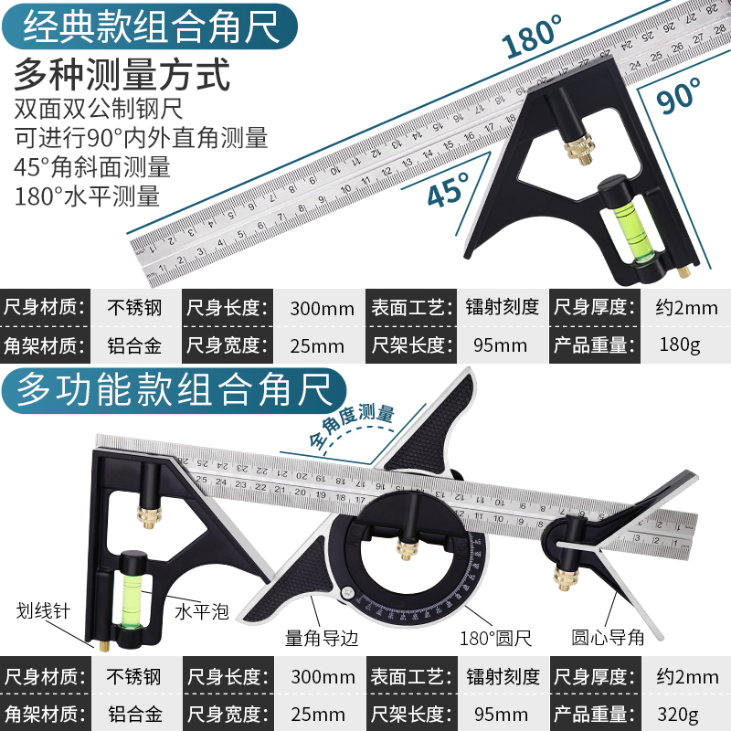 Versatile woodworking combined activity Right angle ruler stainless steel 90-degree 45 high-precision ruler Man with horizontal protractor