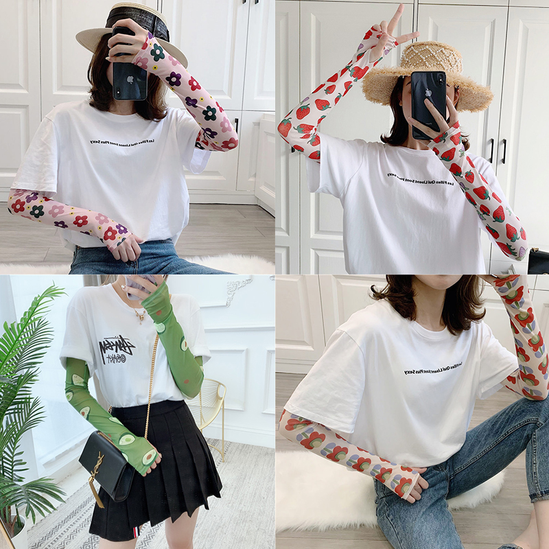 Ice silk hand sleeves for outdoor travel, thin flowers, small flowers, avocado green, ins little red book, same sunscreen sleeves for women