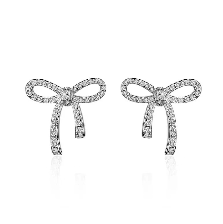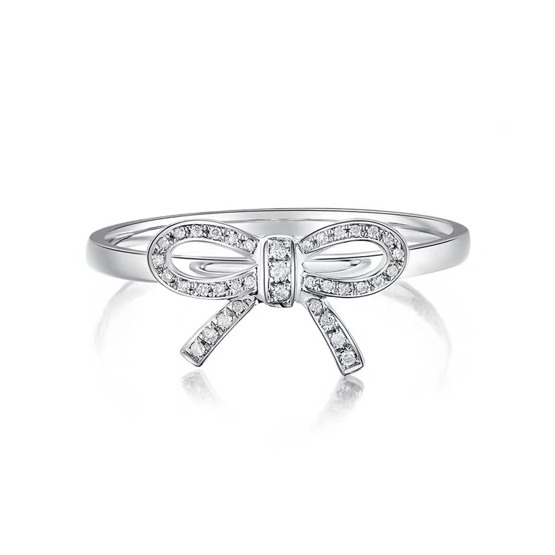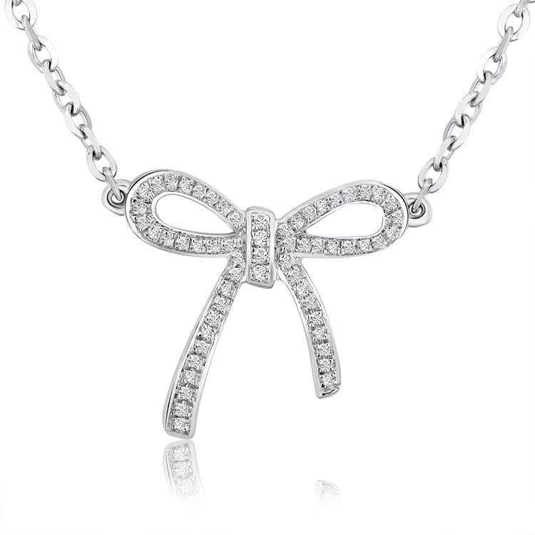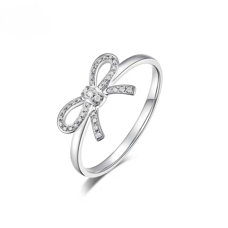 18K Platinum Inlays Mosanstone Butterfly Knot Necklace Earrings Ring Ring Kit PT950 Lock Bone Chain Women, South Korea Sweet