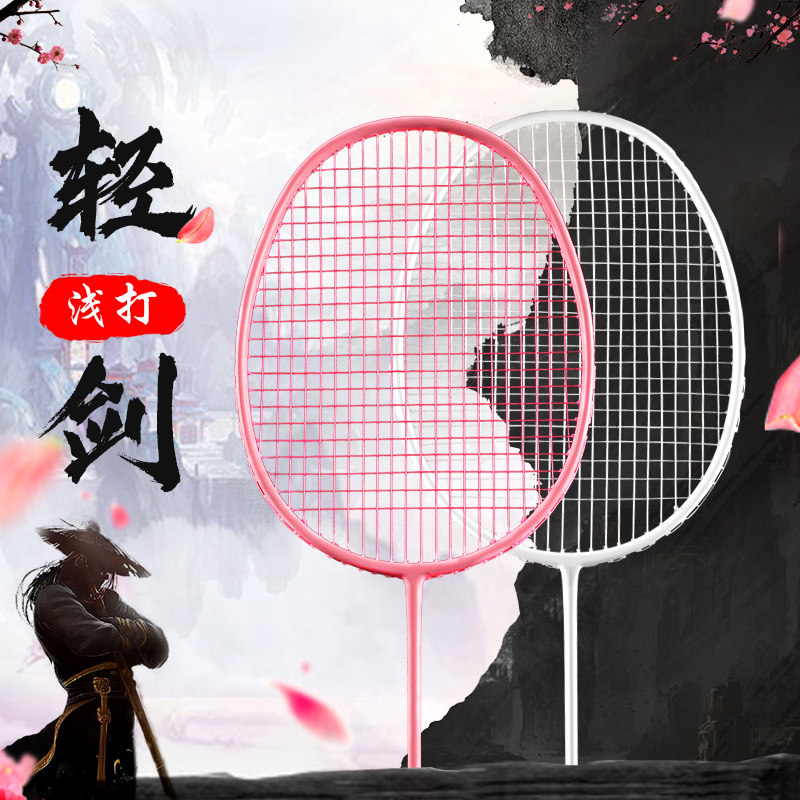 Powder sword FB all-carbon ultra-light ball control type 5U6U black racket white men's and women's badminton racket single shot gift box