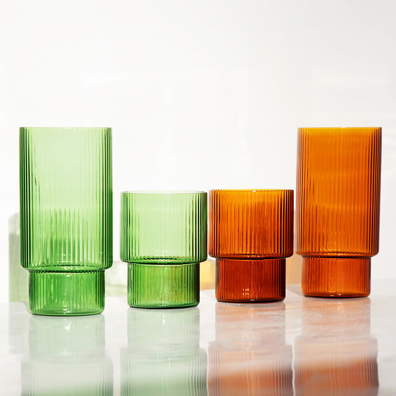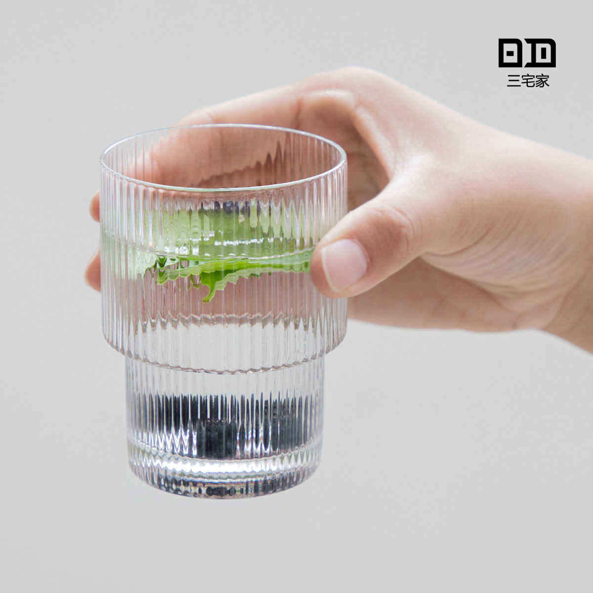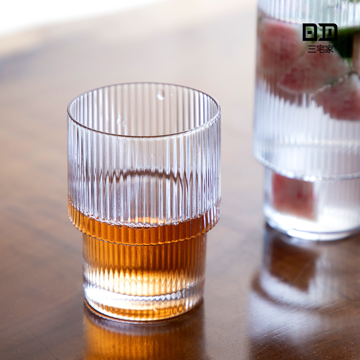 Three household high-color glass whiskey glass cocktail glass resistant high temperature striped medium wind glass