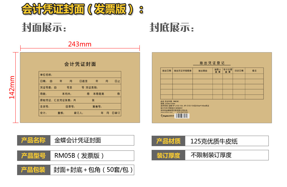 Golden butterfly RM05B seal leather (cover back cover wrap angle) 243x142 warrant binding with 125g kraft paper 50