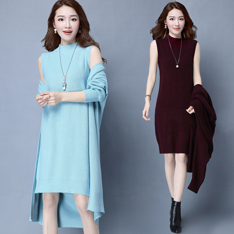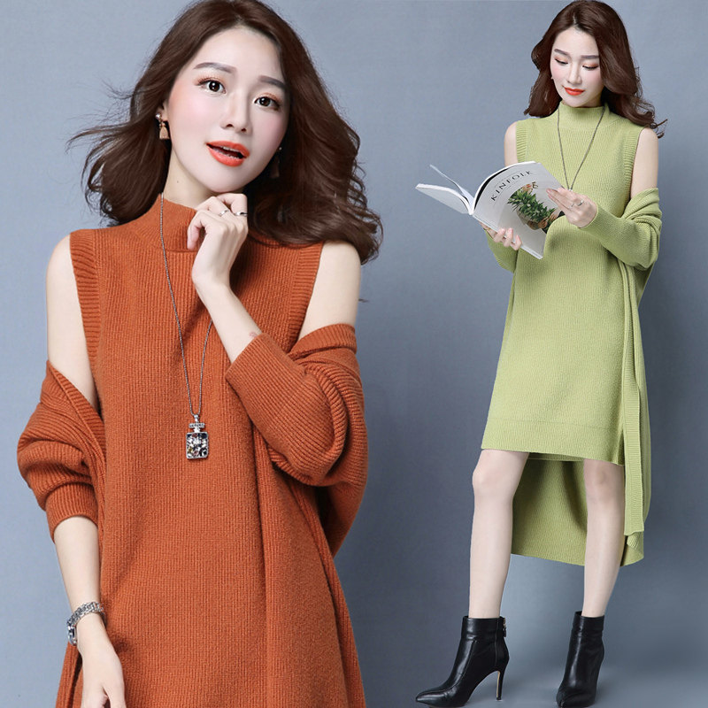 2021 autumn and winter new sweaters Two sets of cashmere cardiovert sweatshirt with long version of sweaters suit damp