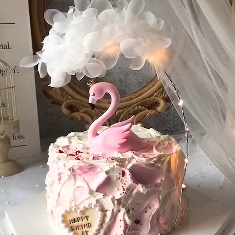 Crown Flamingo Birthday Cake Decorative Dessert Desk Baking Dress up White Mess Valentine's Day Flower Plates