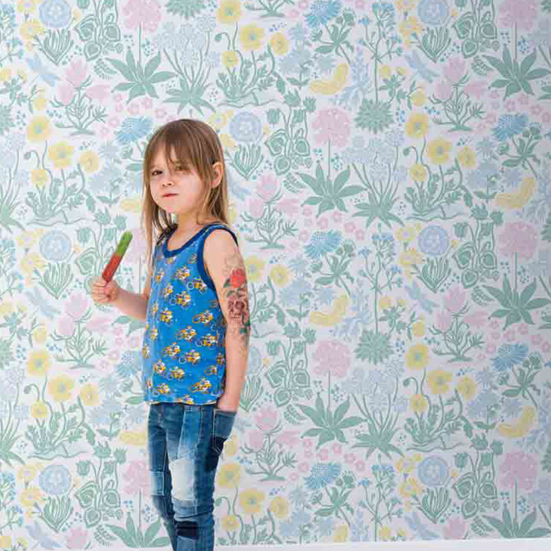 Nordic modern minimalist plant pattern children's room simple wall cloth bedroom background wall custom seamless mural