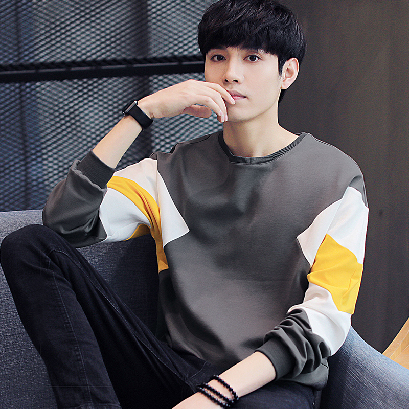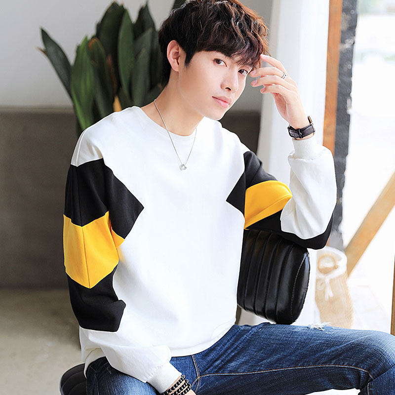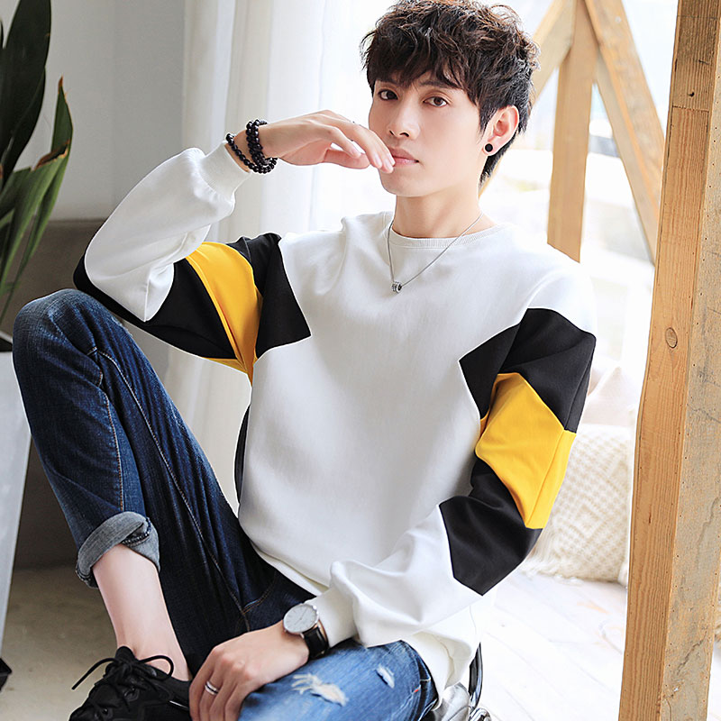 Men's long sleeve T-shirt 2022 Spring new Korean version loose splicing undershirt male loaded with clothing and male damp