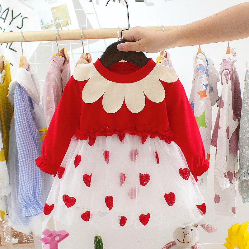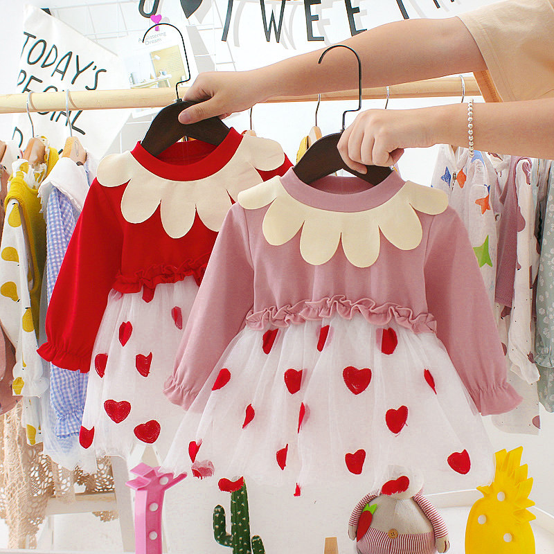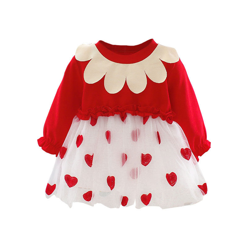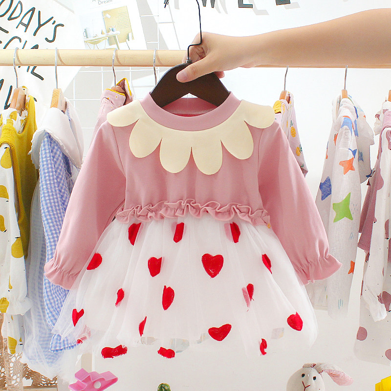 Girls dress autumn clothes baby western style sweet baby tutu skirt long-sleeved stitching mesh skirt spring princess skirt