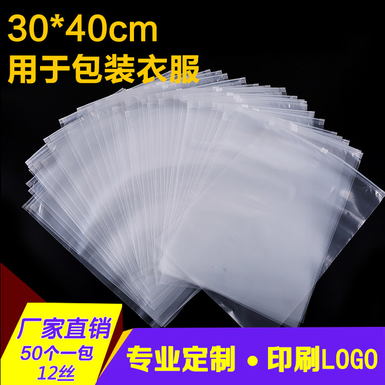 Clothing bags, zipper bags, scarves, pants, etc., sealing packaging, plastic transparent self-sealing bags, 50 pcs. 30*35