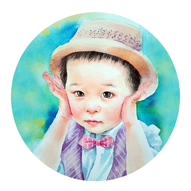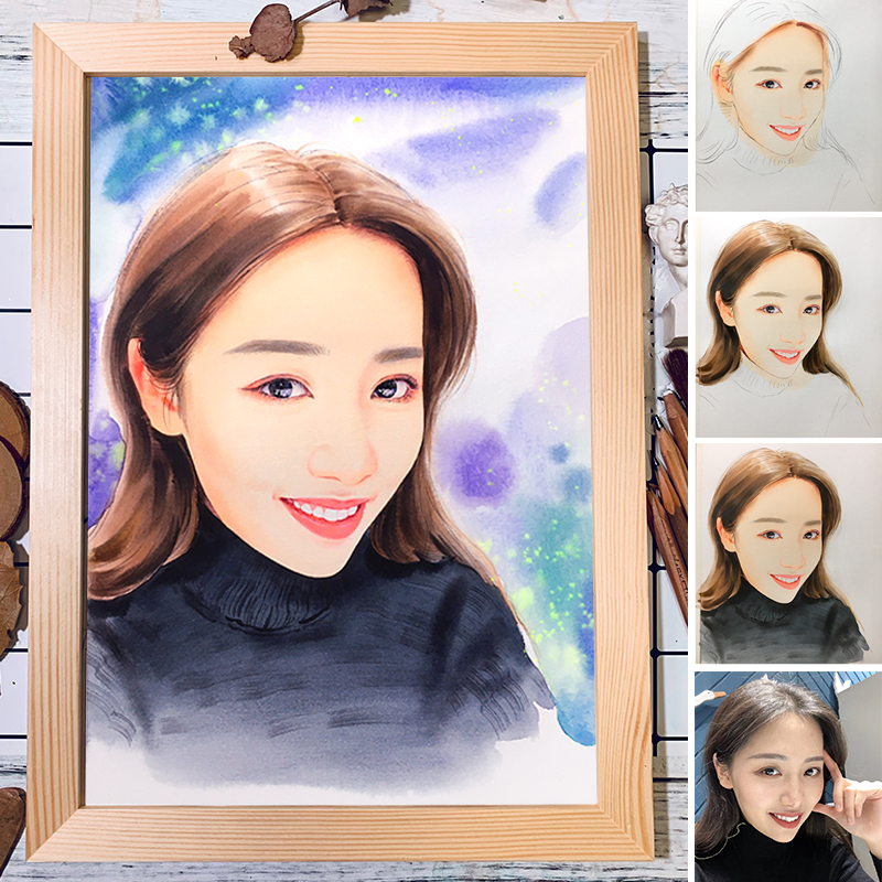 Watercolor live-action photo turned hand-painted figure head painting portrait customized delivery couple baby wedding gift sketch realism