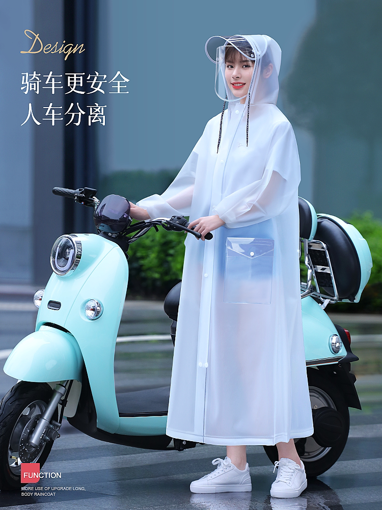 Prepare beauty raincoat ladies long style full body single men's riding rainproof zipper electric bicycle adult poncho