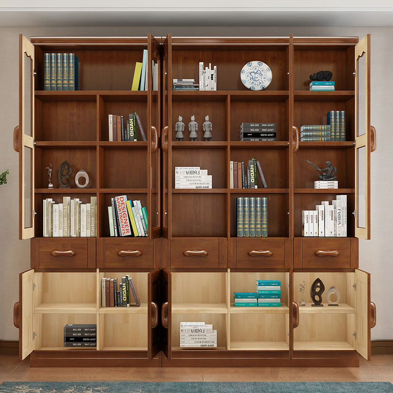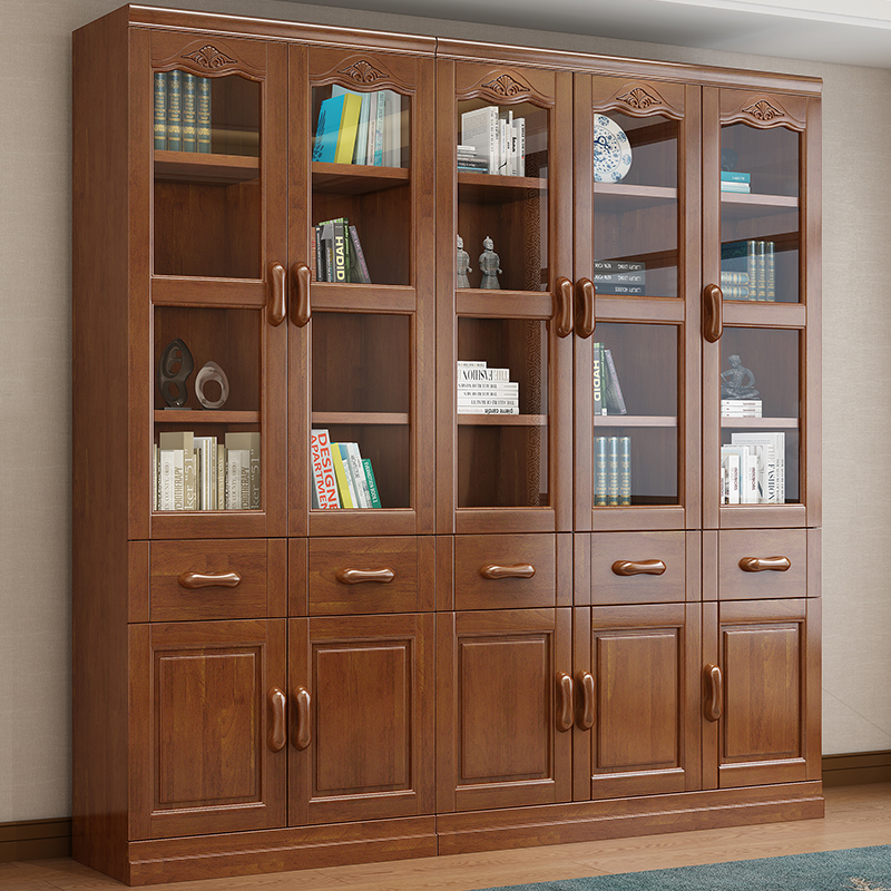 Solid wood bookcase free combination with bookshelf Glass door integration simple Chinese style 5 doors 2 doors office bookshelf storage