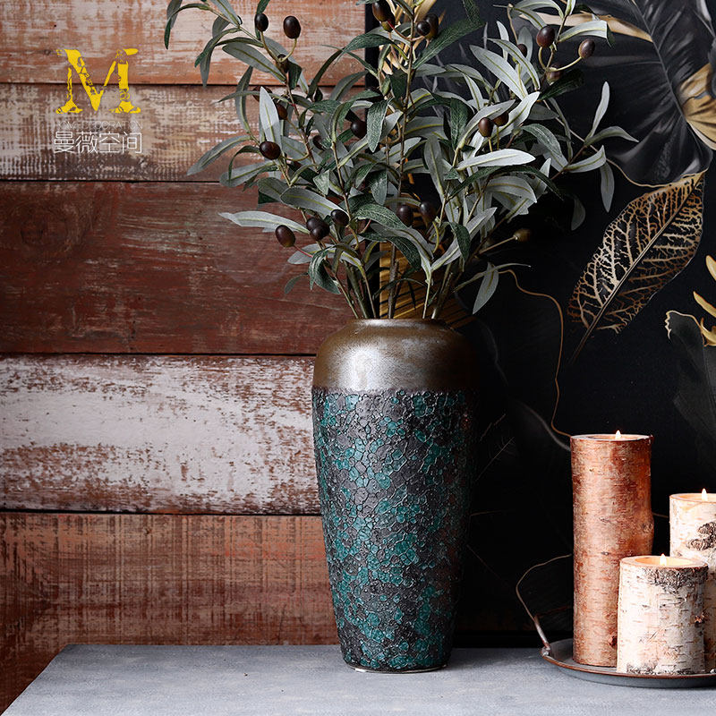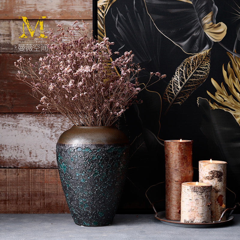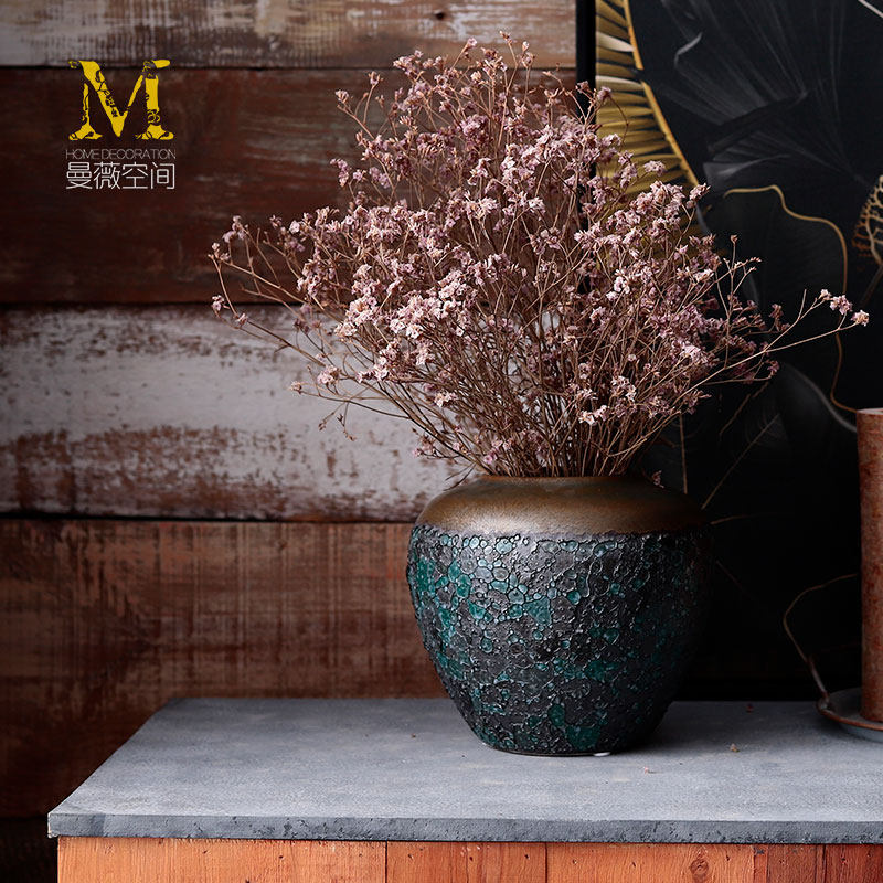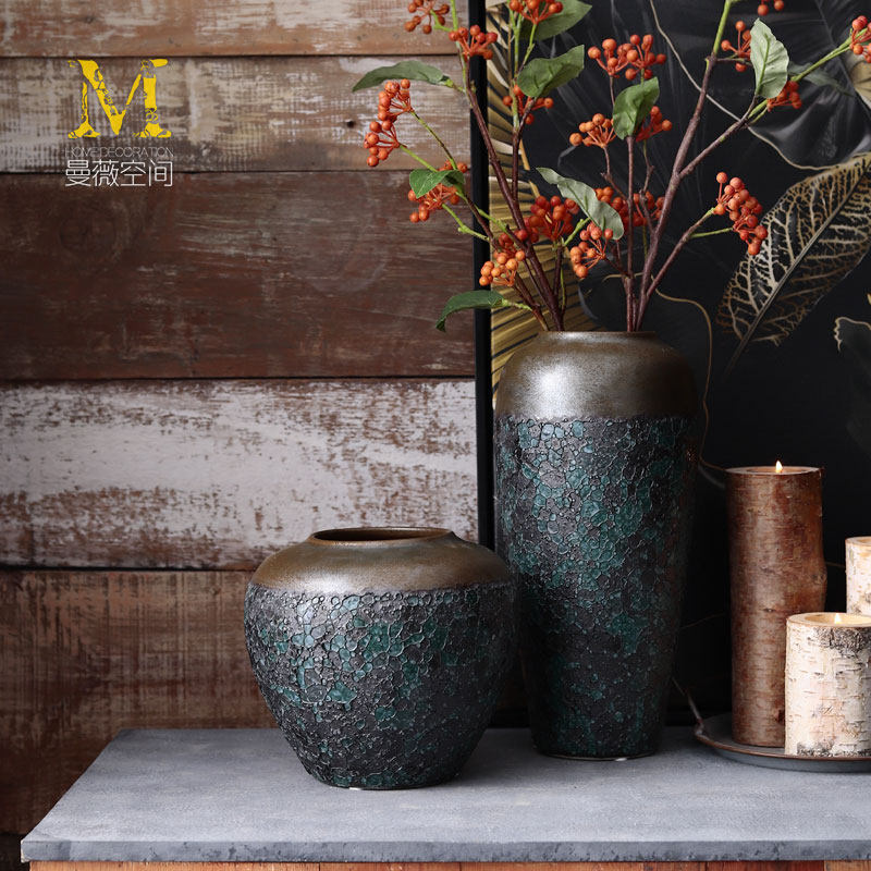 Living-room flower arrangement Swaying Pieces Coarse Pottery Pottery Jar Dry Flower Decoration Pendulum Decoration Retro Art Nordic Vases Modern Minimalist Ceramics