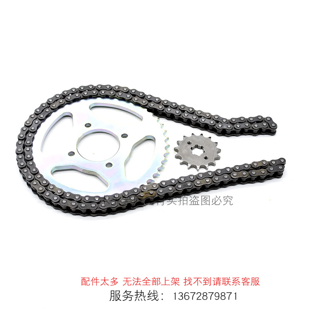 Original clothing chain 1 set of 47 teeth original clothing chain 1 set of 46 teeth separate chain 1 strip (132 knob) cushion glue 1 cover 1 small sprocket 15 teeth 1 rear sprocket 46 teeth 1 small chain wheel 15 teeth