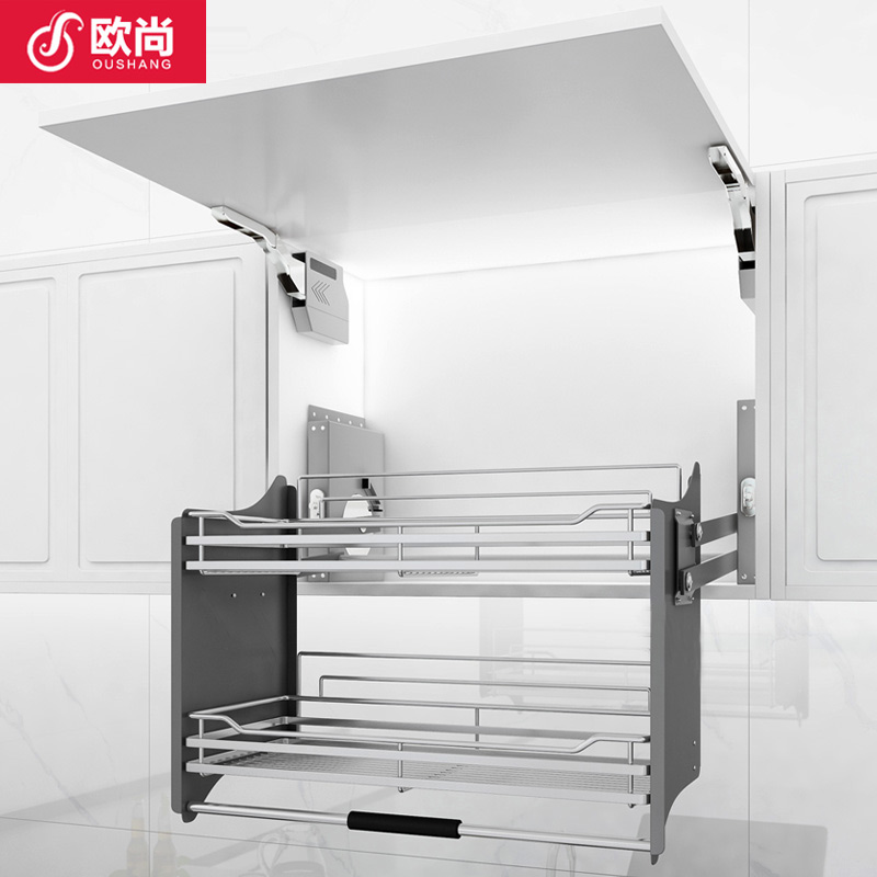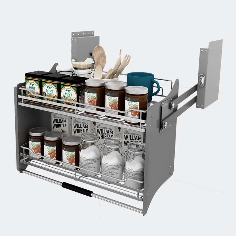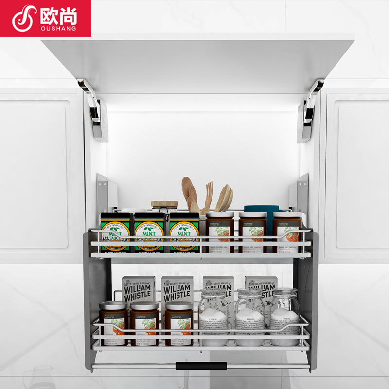 Kitchen cabinet hanging cabinet lifting basket 304 stainless steel pull-down elevator seasoning storage rack storage push pull