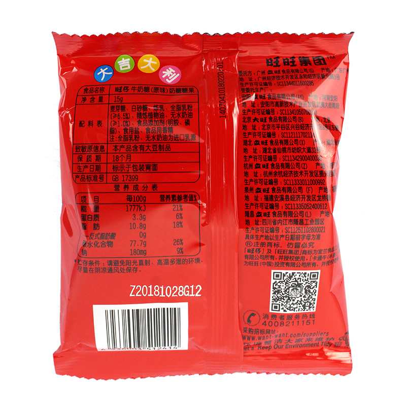 Wang Wang Wang Zai Cow's Milk Sugar 15g Bags Children's Milk Taste Snacks Independent Small Packaging Wedding Wedding Celebration of Sugar Soft Sugar