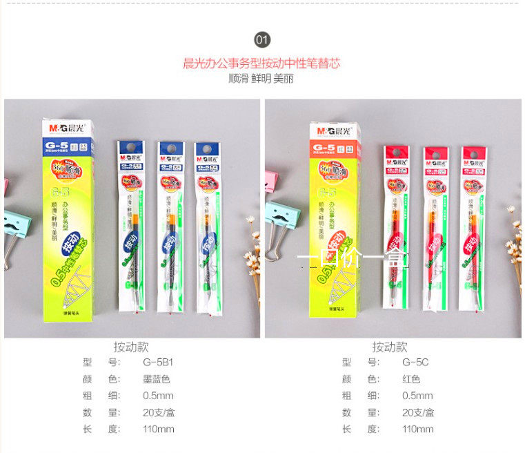 Morning light stationery Neutral pen core water-based pen refill inib black red blue full needle pen refill 0 5 neutral substitute core