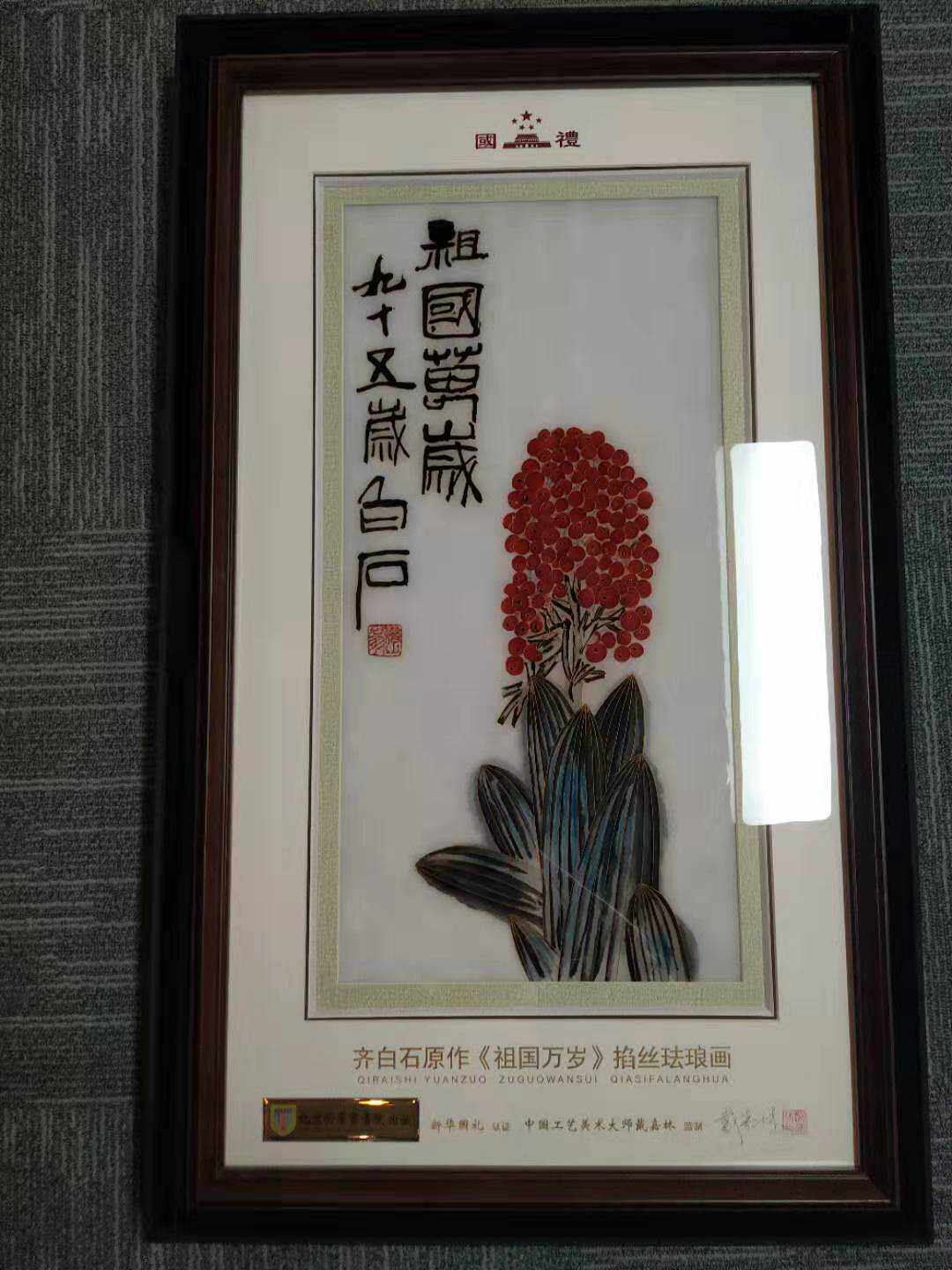 National ceremony Cloisonne filigree enamel painting "Long live the Motherland" Master Dai Jialin's work presented Liu Zhanshu method