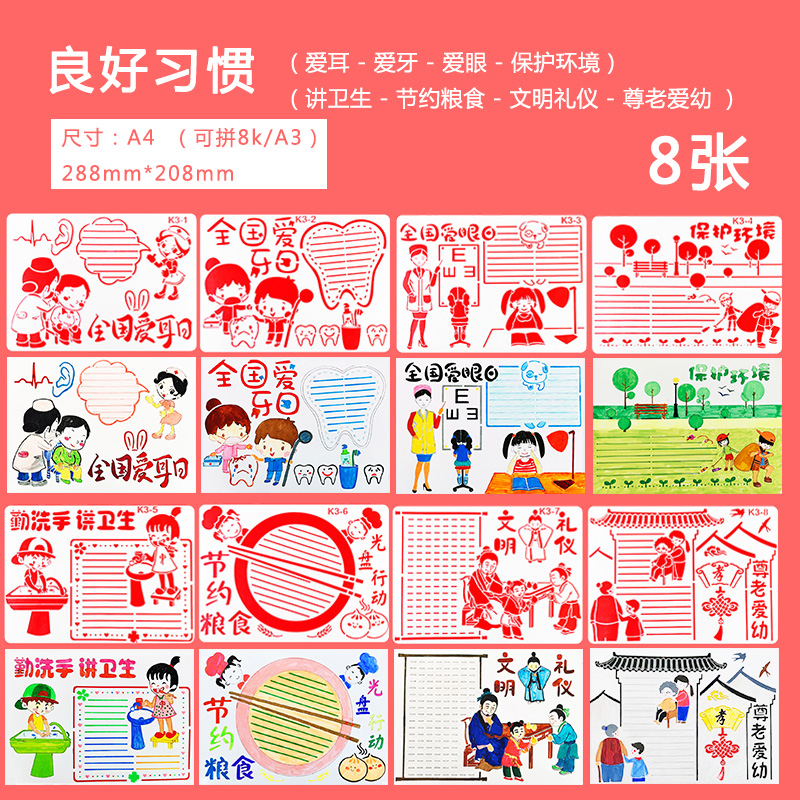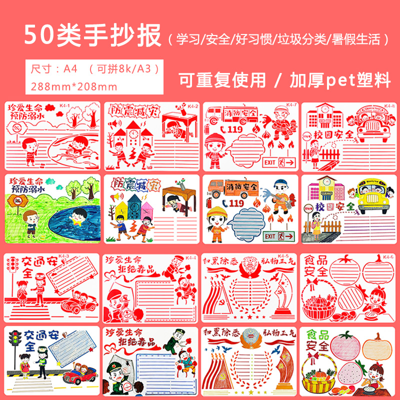 A4 Elementary School Students Hands Transcript Drawing Template Children Summer Vacation Drawing Tools Ruler Holiday Drowning Prevention Campus Safety