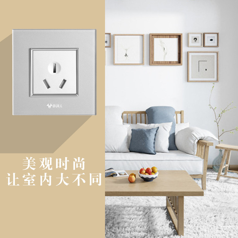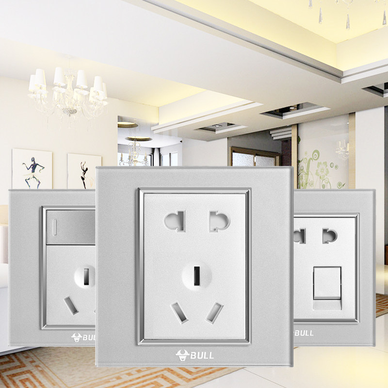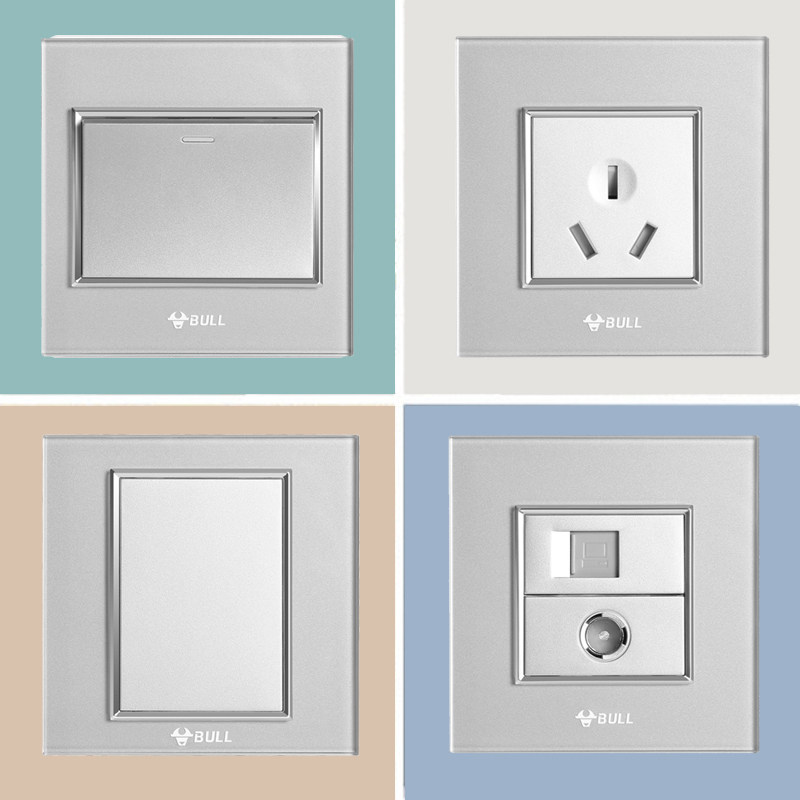 Bull Switch Socket High Crystal Glass Full Moon Silver Panel One 23 Four-Double Cut USB Five-hole Computer Switch G22