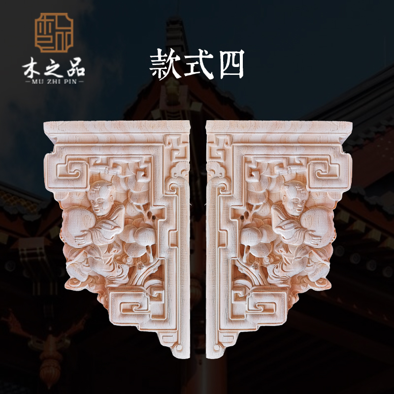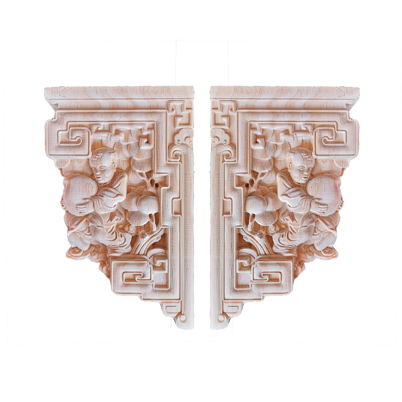 Dongyang wood carving Ancient temple garden Chinese antique solid wood carving horn flower cow leg beam support bird for oblique support flower tree