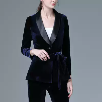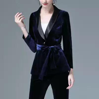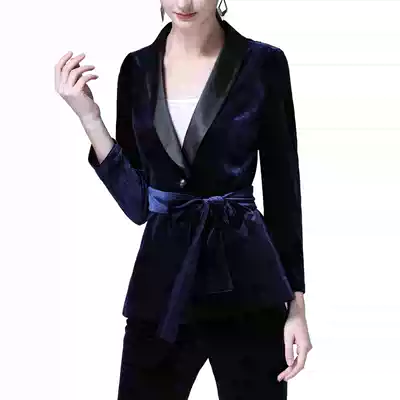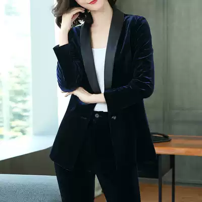 Gold velvet suit suit women's fashion 2021 new high-end professional slim casual green fruit collar small suit jacket