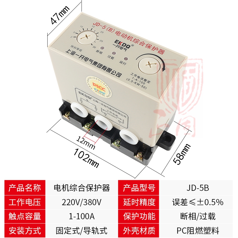Shanghai open motor integrated protector JD-5B 1-100A three-phase absence phase-phase overload protector